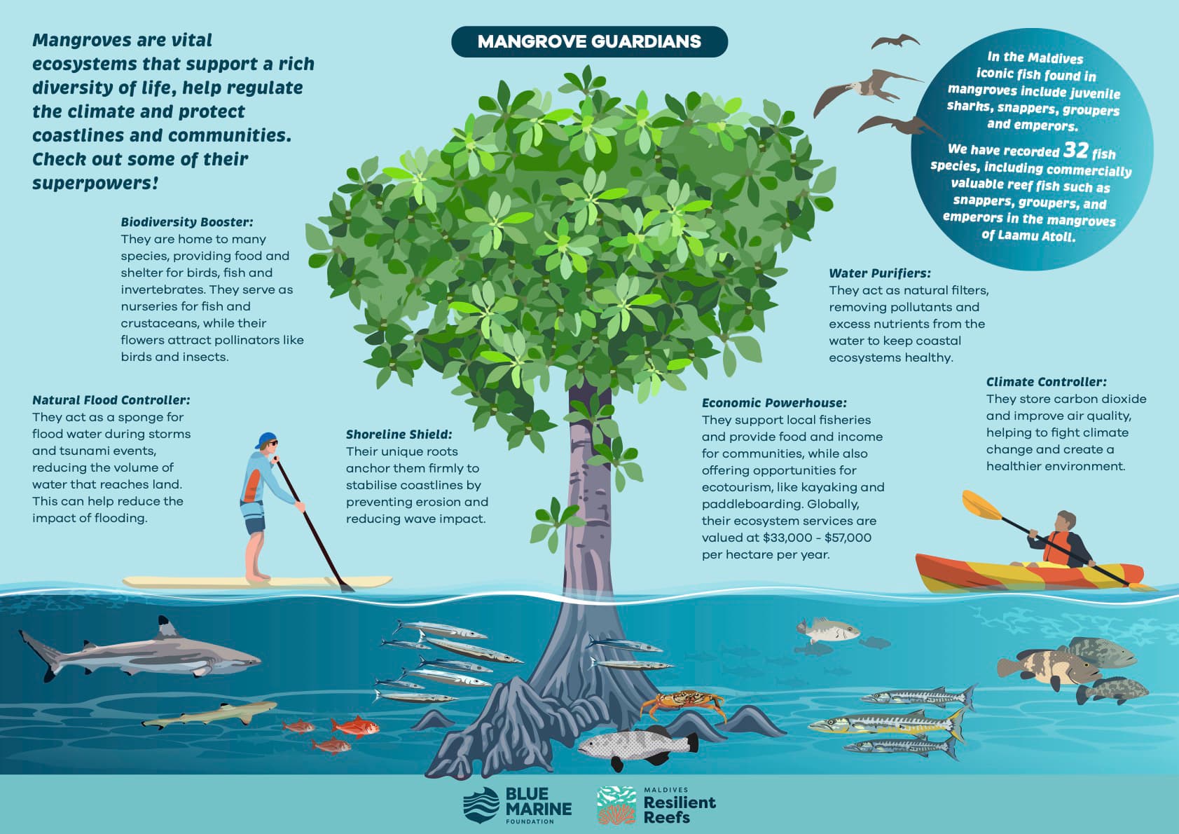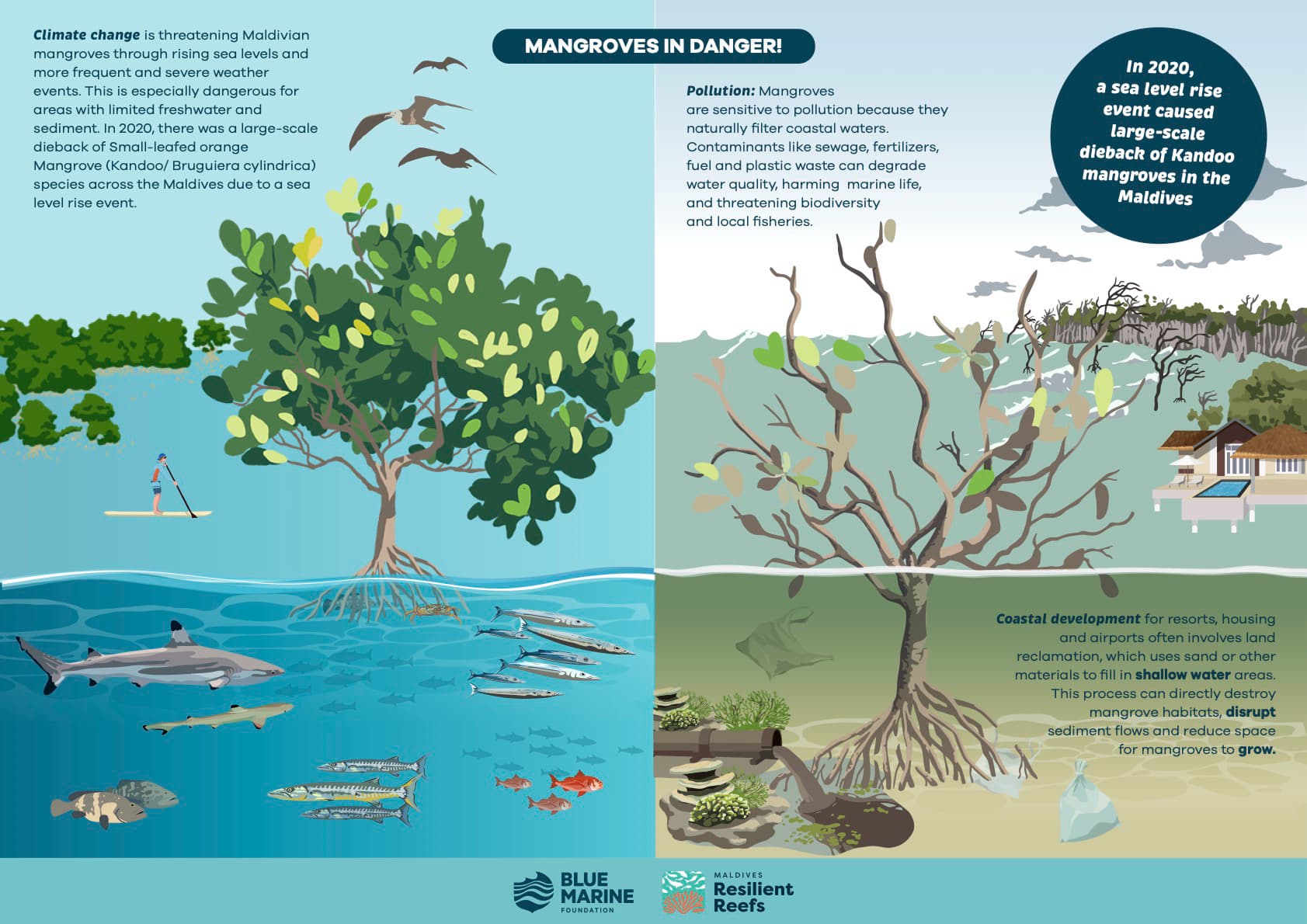 Learn about the threats to mangroves in the Maldies in the infographic below.